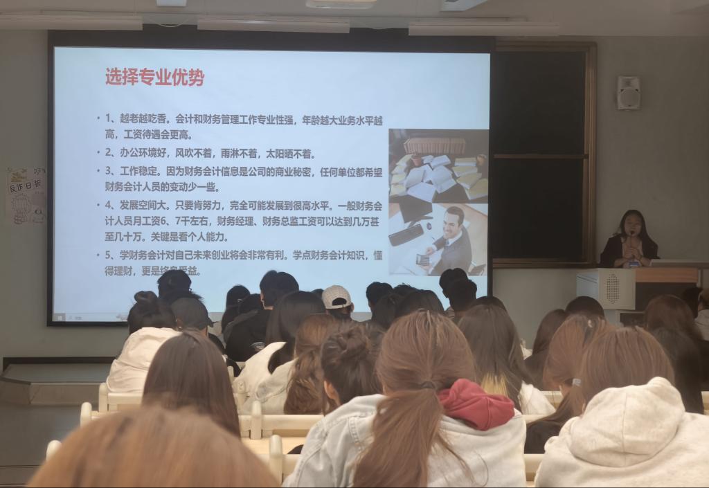 新学期伊始,为帮助2025级新生快速建立对专业的认知、明确学习方向,财管与会计教研室主任穆静及教研室全体教师以“专业选择与未来发展”为核心,为新生们带来了一场生动且深刻的专业启蒙讲座。